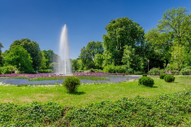 Ogród Krasińskich to zielona enklawa w ścisłym centrum Warszawy, której historia sięga końca XVII wieku. Założony został jako ogród pałacowy dla rodu Krasińskich, jednego z najpotężniejszych w Rzeczypospolitej. Centralnym punktem jest monumentalny Pałac Krasińskich, zwany Pałacem Rzeczypospolitej, dziś mieszczący część zbiorów Biblioteki Narodowej. W XVIII wieku ogród miał charakter barokowy, z symetrycznymi aleami i dekoracjami ogrodowymi, jednak w XIX wieku przekształcono go w park publiczny w stylu angielskim. W czasie II wojny światowej teren i pałac zostały poważnie zniszczone, lecz odbudowa przywróciła mu dawny blask. Ostatnia rewitalizacja nadała mu nowoczesny, ale zarazem historyczny charakter – fontanna, odnowione alejki, place zabaw i zachowany starodrzew przyciągają zarówno rodziny z dziećmi, jak i osoby szukające ciszy. Malownicze jeziorko odbija fasadę pałacu, tworząc jedną z najbardziej fotogenicznych scenerii w Warszawie. Ogród jest dziś miejscem spacerów, odpoczynku i refleksji, łącząc w sobie historię magnackiej rezydencji z funkcją nowoczesnego parku miejskiego.